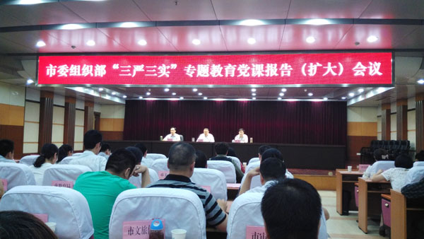按照全市“三嚴三實”專題教育部署安排,結合“弘揚沈浩精神、建設模范部門”主題實踐活動,5月20日下午,市委組織部召開“三嚴三實”專題教育黨課報告(擴大)會議。市委常委、市委組織部部長、市政府常務副市長沈光繼出席會議,并為全市組工干部上了一堂生動的黨課。